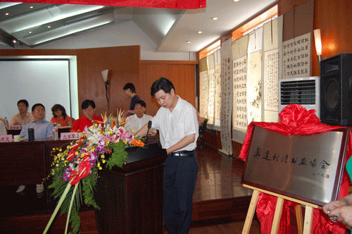 在活动仪式上,北京世纪名人国际书画院秘书长汪碧刚致辞,他说,名人名家走进奥运村,深入生活,参观学习,创作交流,这是积极响应“迎奥运、讲文明、树新风,我参与、我奉献、我快乐”号召的一次具体行动,他表示世纪名人国际书画院秉承“依托名人,培育新人;服务社会,创立品牌”的办院方针,今后将组织更多的名人名家深入基层,服务社会。康成元副院长代表北京世纪名人国际书画院接受了北京奥运村地区党工委书记胡良森赠送的一面印有“名人名家走进奥运村,书画奉献奥运促和谐”的锦旗。北京世纪名人国际书画院院士赵勇代表书画院还向奥运村地区办事处赠送了书法作品。
