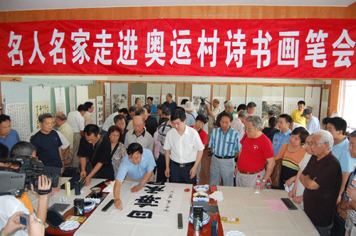 在北京2008奥运会倒计时一周年纪念日,北京世纪名人国际书画院、北京市朝阳区人民政府奥运村地区办事处2007年8月8日联合举行了“名人名家走进奥运村暨奥运村诗书画协会成立仪式”。全国人大常委、中国轻工业联合会会长、世纪名人国际书画院顾问 陈士能题词“同一个世界,同一个梦想”;全国政协港澳台侨委员会副主任、世纪名人国际书画院 院长张道诚为“奥运村诗书画协会”题名;全国政协委员、海军中将、世纪名人国际书画院副院长康成元,中国书法家协会理事、世纪名人国际书画院副院长苗培红,严学章、鲁德林、冯大彪、路世明、赵勇、吴兆义、边保华、张维忠、胡春奎、萧良平、牛朝、鲁若曾、张珊珊、唐平甲、彭一超等首都部分书画家参加活动。
