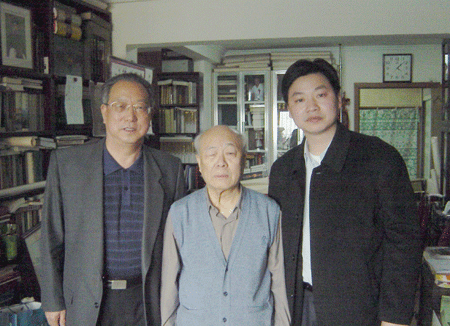 院长张道诚(左)、秘书长汪碧刚(右)与艺术顾问欧阳中石(中)合影。