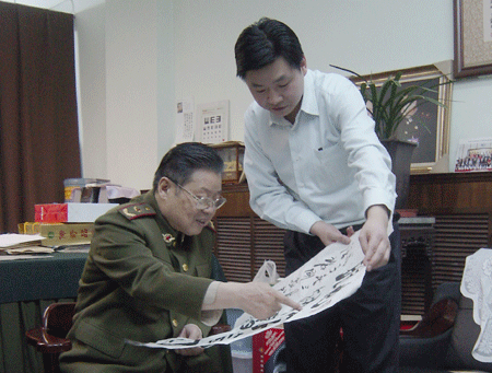 2008年3月16日下午,本院院长长道诚、秘书长汪碧刚前往首都师范大学看望本院艺术顾问、中国书法文化研究院名誉院长欧阳中石先生,并简要通报了本院成立两年多来的工作。欧阳中石先生对本院的各项工作表示满意,并对本院将于今年6月举办的以“迎奥运,颂和谐”为主题的第三届“中国名人名家书画精品展”寄于厚望。欧阳中石先生将自己的书法作品“惟诚为道”赠予张道诚院长。