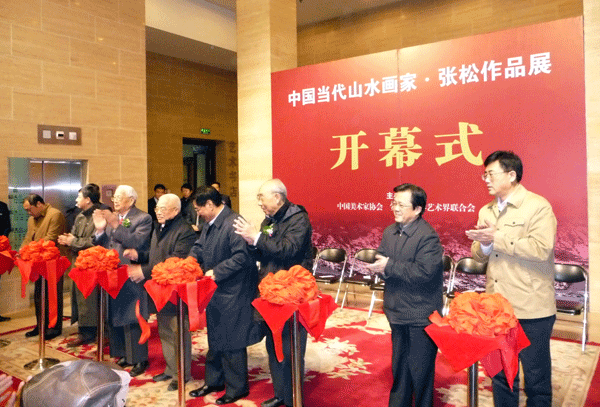 2008年11月19日至25日,由中国美术家协会和安徽省文学艺术界联合会共同主办、北京世纪名人国际书画院协办的“中国当代山水画 家·张松作品展览”,在北京中国美术馆展出。19日上午10时许,原中共中央政治局委员、中央军委副主席迟浩田上将在开幕式刚刚结束就专程来到中国美术馆参观展览;全国政协常委、安徽省委原书记黄璜,安徽省原省长王郁昭,中国文联书记处书记、副主席、中国美协副主席冯远,中国美协分党组书记、常务副主席吴长江,中国书协分党组书记、驻会副主席赵长青等出席开幕式并剪彩。吴长江代表中国美协致贺辞,画家张松致答谢辞,安徽省文联党组书记杨屹主持开幕式,北京世纪名人国际书画院副院长苗培红、朱守道,秘书长汪碧刚及书画界知名人士郭怡 孮 、卢禹 舜 、陈大利、陈传席、郭公达、陆鹤龄、王涛、刘建等及社会各界人士近千人参加开幕式。