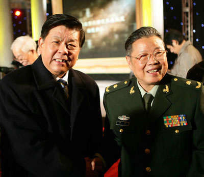 中国文联党组书记胡振民 ( 左 ) 祝贺 李铎先生获奖