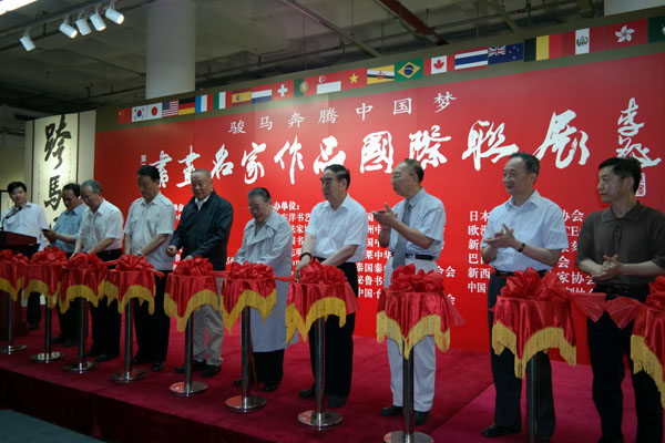 2014年5月24日,由北京中韩书画家联谊会主办,北京世纪名人国际书画院、世侨书画院、中国书法展览馆承办的“骏马奔腾中国梦•第21回书画名家作品国际联展”在北京中国书法展览馆开幕。中国书法家协会顾问、北京中韩书画家联谊会名誉会长李铎,于振武上将,冯永生、景学勤中将,全国政协原副秘书长、世纪名人国际书画院院长张道诚,秦建辉将军,中国美协理事、中国华侨画院院长张清智,世界华侨华人社团联合总会常务副会长、世侨书画院名誉院长孟昭澄,北京市文联事业发展部主任陈润华出席开幕式并剪彩。中国书协历届理事赵立凡、丁谦、白景峰、白秋晨、朱守道、毕政、张坤山、刘普选、贾起家、颜振卿、倪进祥以及韩国东洋书艺协会会长林炫圻、新加坡狮城书法篆刻会顾问邱程光、比利时书画艺术研究院院长陆维华、香港国际书法篆刻会会长吴任、中国书法展览馆执行馆长王清杰等700余人出席活动。全国青联委员、北京中韩书画家联谊会常务副会长兼秘书长汪碧刚主持开幕式。