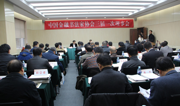 2014年11月29日,中国金融书法家协会第三届全国理事会第一次会议在北京银泉大厦召开,来自全国银行、证券、保险等金融业的61名优秀书家代表出席了会议。