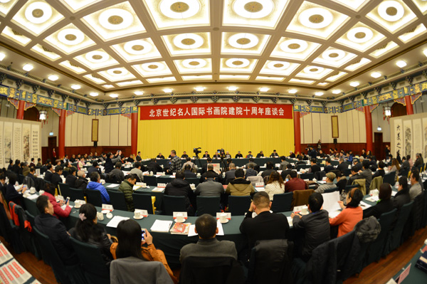 1月10,全国政协礼堂三楼大厅,北京世纪名人国际书画院建院十周年座谈会现场。