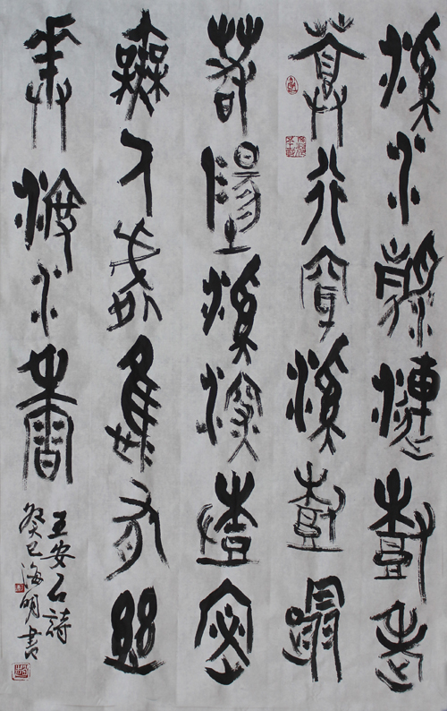 “生也有涯,无涯为智。逐物实难,凭性良易。傲岸泉石,咀嚼文义。文果哉心,余心有寄”(刘勰《文心雕龙•序志》)。书法篆刻对于我来讲是重要的,这是三十余年心画创作之所得,不仅仅因为他有“意与道会”的参悟,还在于它的创作过程是心灵的倾诉,精神的寄托。当笔墨(刀)在宣纸(石)上翩翩起舞,呈现五色意象的墨线,黑白世界、金与石的碰撞,给我心灵带来无限的怡悦。在与古人的神游之交中,平了心性,省了自身,感悟了人生之道。不断在肯定到否定,再从肯定到再次否定,循环往复、否定自我中,心性超然,其乐融融矣。