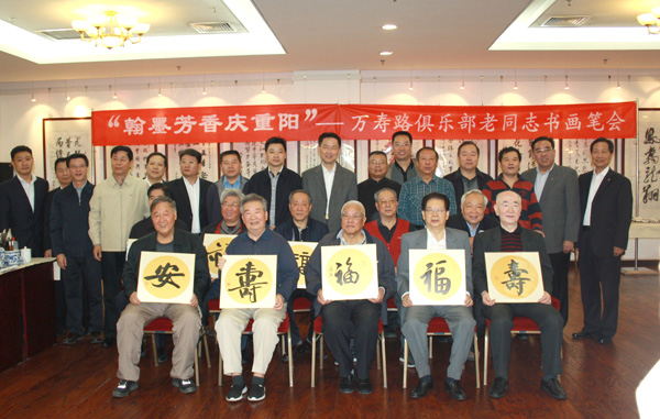 2016年10月9日,是九九重阳节,为弘扬尊老、敬老、爱老、助老的优良传统,北京世纪名人国际书画院(以下简称名人书画院)组织首都书画家一行11人专程来到中央办公厅老干部俱乐部,举办“走基层、送文化,敬老爱老”慰问老同志活动。全国政协原副秘书长、名人书画院院长张道诚,中国书协第四、五、六届理事、名人书画院副院长朱守道,中国书协第五、六届理事、中国金融书协名誉主席、名人书画院副院长张铜彦,全国青联委员、中国书协青少年委员会委员、名人书画院副院长兼秘书长汪碧刚,中国书协理事、名人书画院副秘书长张维忠,以及名人书画院副秘书长赵勇、崔勇波、彭一超、李小成、钱建恒,中国美协会员、名人书画院中国画创作委员会秘书长陈培伦等参加活动。活动现场书画家向老同志赠送了不同风格题材的书画作品80余幅,针对一些老同志的具体要求,书画家还为他们进行了内容命题创作,开展书画交流互动,受到老同志们的欢迎。