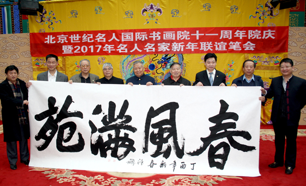 2017年1月8日,北京世纪名人国际书画院在中国政协文史馆举行名人书画院十一周年院庆暨2017名人名家新年联谊笔会。中国人民解放军上将周坤仁、中直机关工委原副书记贾祥等名人书画院顾问,全国政协原副秘书长、名人书画院院长张道诚,中国人民解放军少将苏庆玉,中国书协顾问、名人书画院副院长张飙,全国政协委员杨骥川,著名表演艺术家王铁成,中国书协历届理事、名人书画院副院长朱守道、赵立凡,以及贾起家、颜振卿、张维忠等首都名人名家100余人参加活动。全国青联委员、中国书协青少年工作委员会委员、名人书画院副院长兼秘书长汪碧刚主持活动。