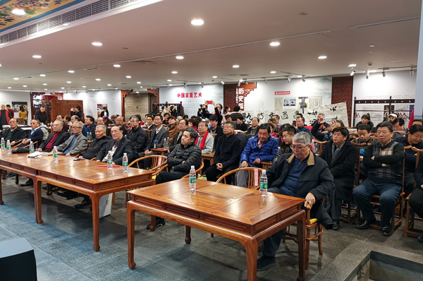 张道诚院长在院庆仪式上致辞,他说,13年来名人书画院始终坚持“依托名人,培育新人;服务社会,创立品牌”的16字办院方针,积极搭建书画名家与社会名人交流互动的平台,致力推动“名人名家书画精品”自主品牌战略,成功举办了13届“中国名人名家书画精品展”,院刊《名人名家书画报》出版90期,越办越有特色,读者逐渐增多,影响逐步扩大。名人书画院迄今开展了500余项不同规模的书画交流活动,百万人次参与,在创作交流、学术研究、展览培训等诸多领域取得一些成绩,赢得了社会广泛认同和书画界普遍赞誉。张道诚指出,2019年名人书画院要以习近平新时代中国特色社会主义思想为指导,全力办好以“庆祝新中国成立70周年”为主题的第14届“中国名人名家书画精品展”。