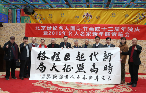 2019年1月6日,北京世纪名人国际书画院在中国政协文史馆举行名人书画院十三周年院庆暨2019名人名家新年联谊笔会。中国人民解放军上将周坤仁,中央和国家机关部级领导陈士能、贾祥、卢昌华、王治国,中国人民解放军少将苏庆玉、杨念成,全国政协原副秘书长、名人书画院院长张道诚,中国书协顾问、名人书画院副院长张飙,中国书协历届理事、名人书画院副院长朱守道、赵立凡、张铜彦,中国书协理事张坤山、颜振卿、张维忠,中央电视台新闻主播长啸,书画家杨骥川、罗勤、李瑞涛、孙德才、赵勇、薛居波、李小成、王巨亭、钱建恒、彭一超等首都名人名家100余人参加活动。全国青联委员、中国书协第六届青少年工作委员会委员、名人书画院副院长兼秘书长汪碧刚主持活动。