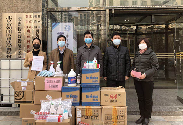 新冠肺炎疫情牵动人心。街道与社区疫情防控工作繁重、物资紧缺。2020年3月6日,北京世纪名人国际书画院专门向北京市朝阳区人民政府奥运村街道办事处捐赠抗疫物资,为街道和社区战“疫”加油鼓劲。全国青联委员、北京世纪名人国际书画院副院长兼秘书长汪碧刚,北京市朝阳区奥运村街道武装部部长何涌参加简短捐赠仪式并代表双方交接捐赠物资。北京世纪名人国际书画院办公室主任刘欧祥、北京市朝阳区奥运村街道党群工作办公室副主任李辉、奥运村街道综合办公室副科长焦娜、奥运村街道领地商务楼宇党建服务站指导员武剑丽等参加捐赠活动。捐赠活动由奥运村街道领地商务楼宇党建服务站承办,此批物资,将调配给奥运村街道直接从事防疫防控一线工作人员使用。