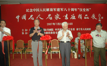 2007年7月22日,由北京世纪名人国际书画院、中共福建省泰宁县委、泰宁县人民政府主办,福建汉堂生物制药股份有限公司协办的“纪念建军八十周年中国名人名家书画精品展”在全国政协会议中心展出。全国政协副主席周铁农 出席开幕式并为展览剪彩;全国政协港澳台侨委员会副主任、北京世纪名人国际书画院 院长张道诚,中共福建省泰宁县委书记曾祥辉,福建省汉堂生物制药股份有限公司董事长魏佰兴分别致辞 ;中国书协顾问、本院艺术顾问李铎将军代表本院为汉堂公司董事长魏佰兴颁发“名人书画事业特别贡献奖”;著名书法家、本院院士赵立凡、赵勇分别向泰宁县、汉堂公司赠送书法作品;开幕式由中国书法家协会顾问、北京世纪名人国际书画院 副院长张飙主持;中国文联原副主席罗扬、中国书法家协会顾问李铎、中国书协理事罗杨、邹德忠、赵立凡、李洪海等社会各界知名人士和书画爱好者数百人参加开幕式并参观展览。