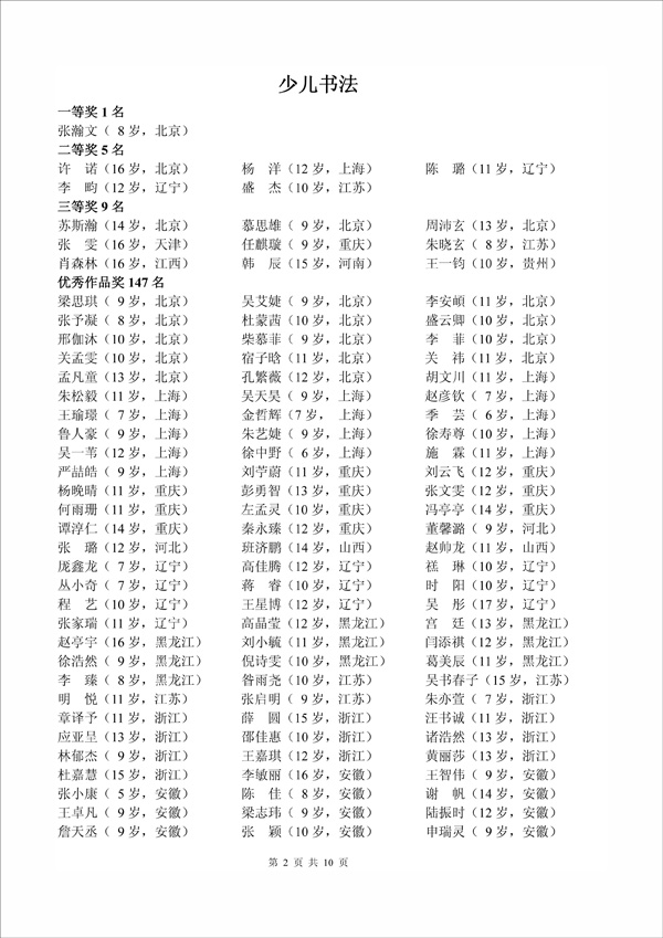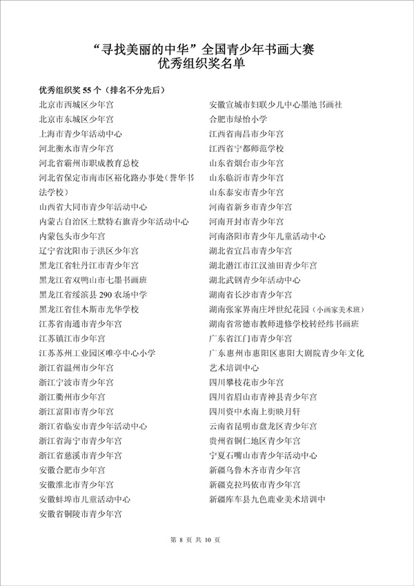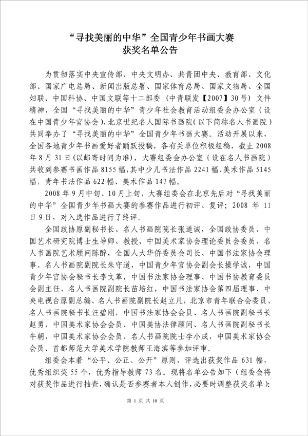“寻找美丽的中华”全国青少年书画大比赛获奖名单公告