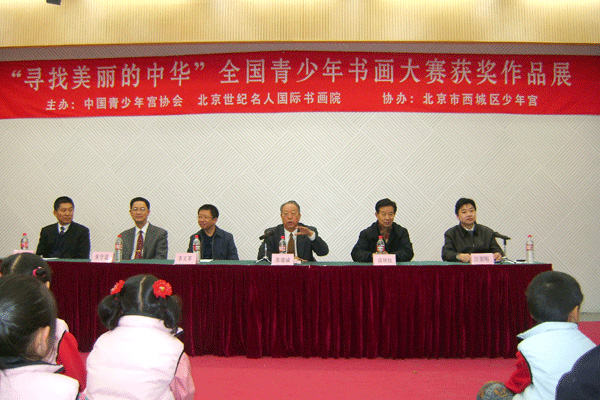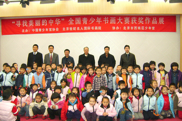 由中国青少年宫协会、北京世纪名人国际书画院联合主办的“寻找美丽的中华”全国青少年书画大赛获奖作品展,于2008年12月25日在北京市西城少年宫开幕,中国青少年宫协会副会长兼秘书长李文革,全国政协原副秘书长、北京世纪名人国际书画院院长张道诚分别致辞,大赛评委代表苗培红、朱守道等及青少年书画爱好者200余人出席开幕式并参观展览,开幕式由北京世纪名人国际书画院秘书长汪碧刚主持。